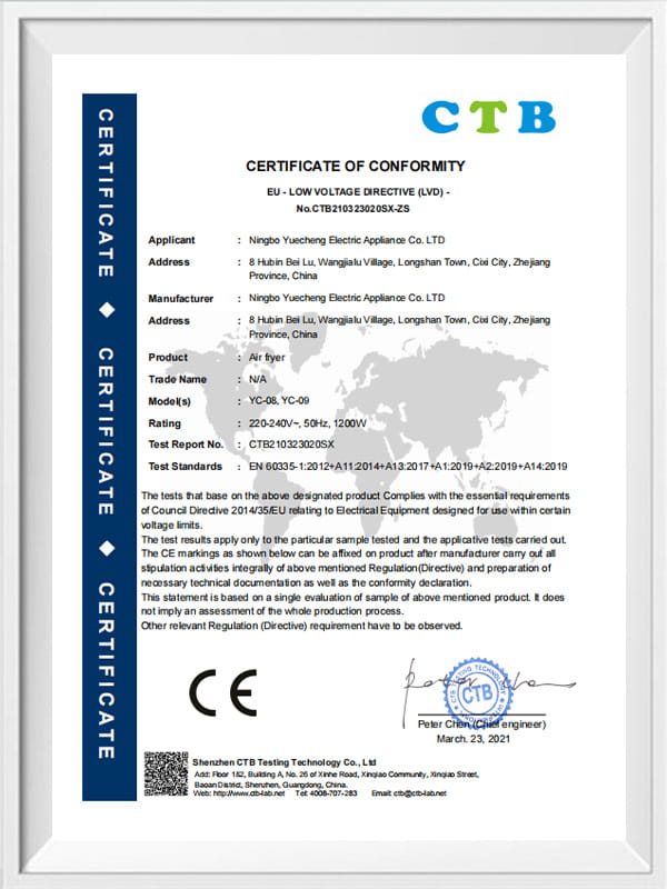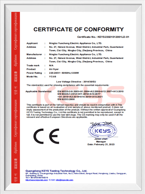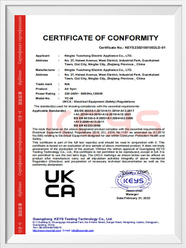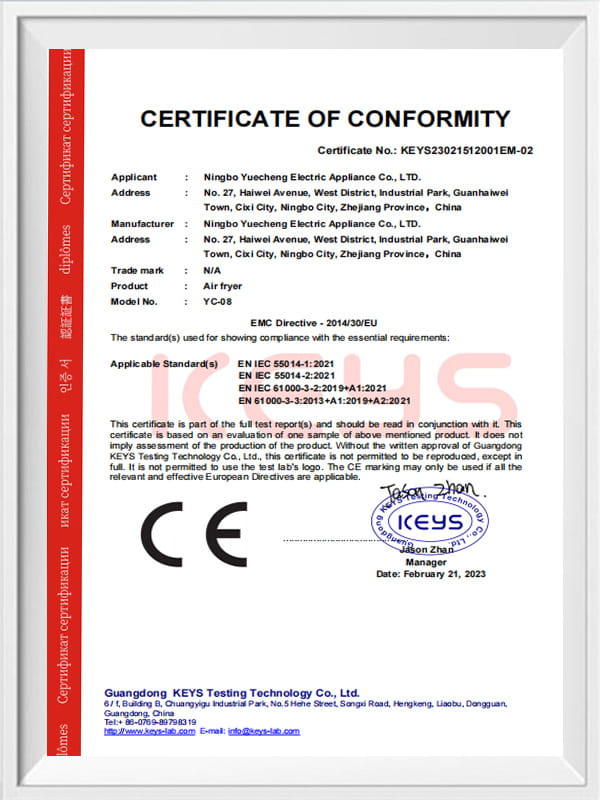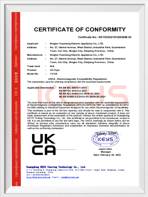 Pensijilan- Ningbo Yuecheng Electric Co., Ltd.
